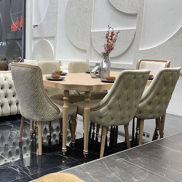 میز نهارخوری مدل استالین که مبل آن نیز در محصولات مبل کلاسیک موجود است بصورت 4 – 6 و 8 نفره قابل سفارش می باشد.کلاف این محصول از چوب راش تهیه شده و اندازه و ابعاد میز در قسمت مشخصات محصول قابل مشاهده می باشد.
